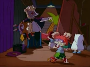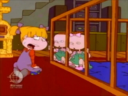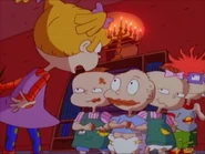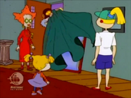 Angelica sees her swollen nose in Lou's fun house mirror