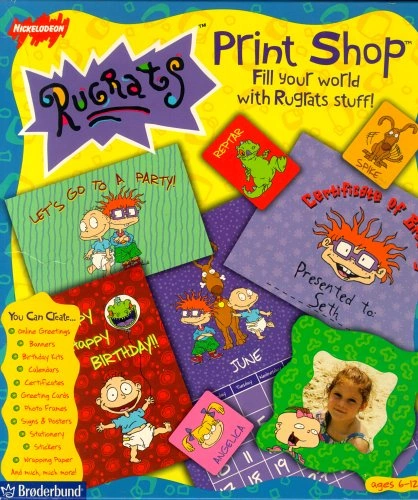 No playpen can hold back these babies! They've busted out - and you can put them everywhere! Design and print thousands of different Rugrats projects. Take Tommy to school, let Chuckie announce your birthday plans, even stick Angelica on envelopes and mail her to your friends!