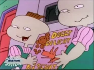Angelica eats the dog biscuits noisily, unaware that they're not really cookies
